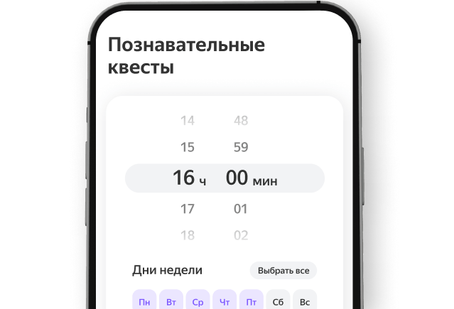 Для разных дней можно установить разное расписание: например, по будням Алиса будет будить ребёнка в 7:00, а в выходные — в 10:00. И пока они вместе делают разминку, вы сможете рядом насладиться чашечкой утреннего кофе.