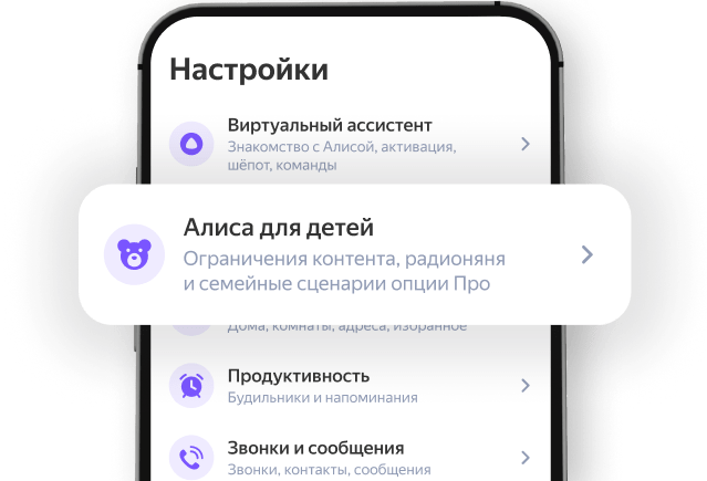 Вечером Алиса поможет настроиться на сон даже тем, кто обычно не спешит в кровать. В заданное время она позовёт ребёнка чистить зубы и ложиться спать. А когда он будет под одеялом, включит сказки и звуки природы. Вы можете сами настроить их продолжительность в приложении Дом с Алисой.