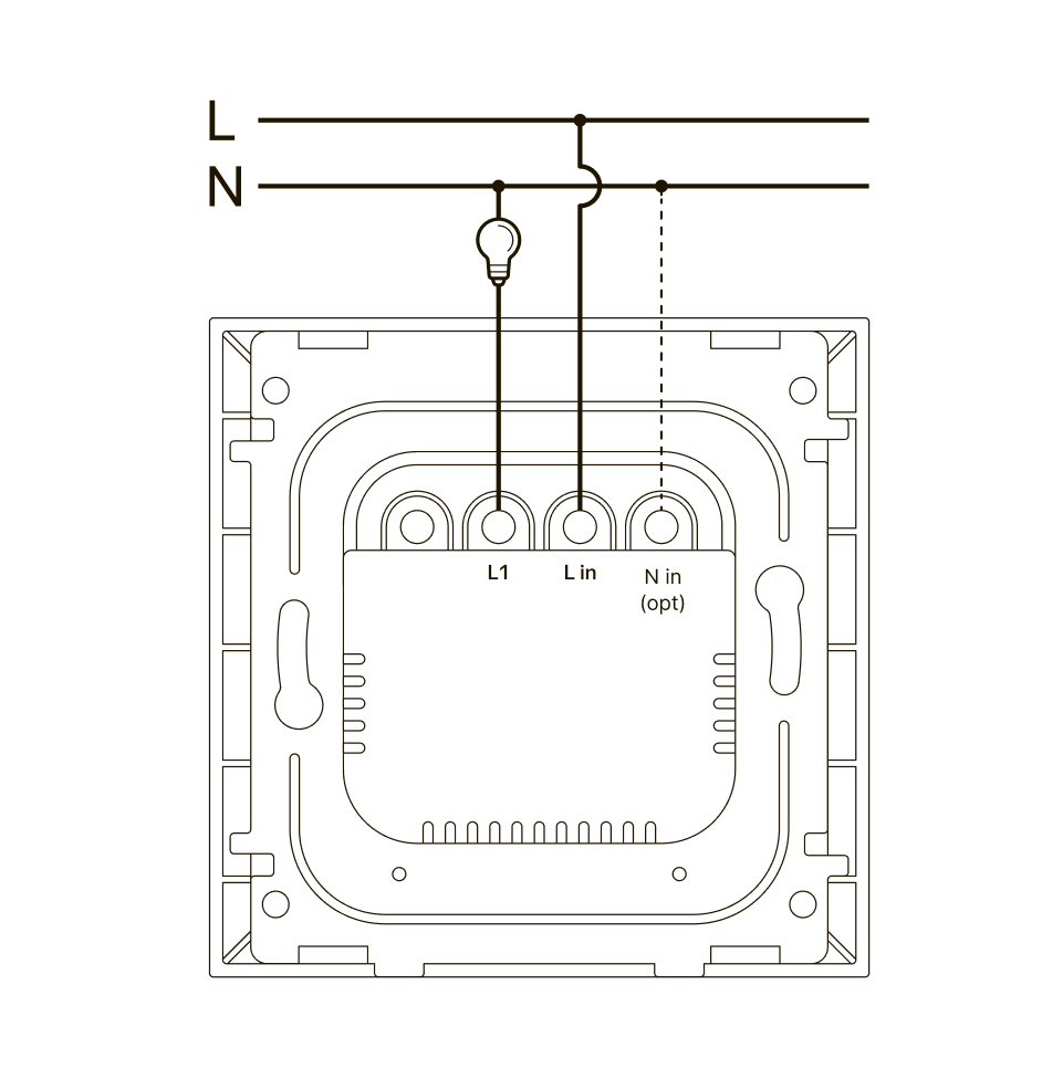6. Подайте питание на выключатель и попробуйте нажать кнопку. Если лампочка включилась — установка завершена.