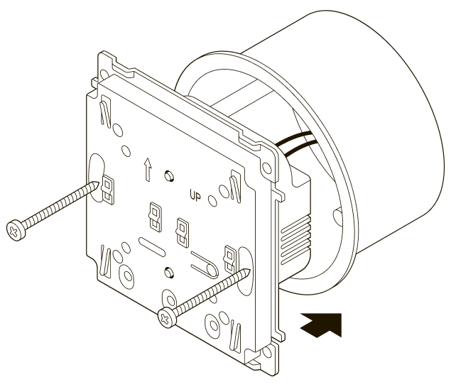 4. Установите выключатель в подрозетник и закрепите его с помощью винтов из комплекта.